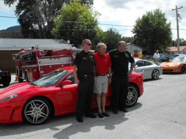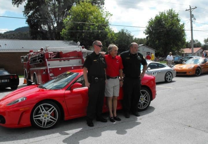 Deputies Jerry Craig Loggins (right) and Larry Hill (left) of the Newton County (Ark.) Sheriff's Office met former Formula One race-car driver Derek Bell while providing security for the Ferrari Club of America's 2010 Crescent Classic event. Deputy Hill got to ride with Bell in a Ferrari F430.