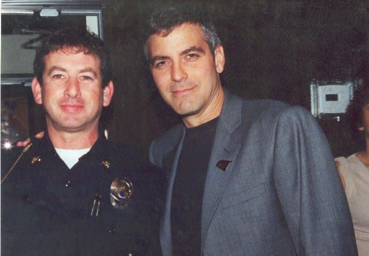 Sgt. Mitch Spike of the Palm Springs (Calif.) PD was assigned protection duty for George Clooney for a screening of "Confessions of a Dangerous Mind" (2002). "I'll always remember Mr. Clooney because my daughter, a huge fan of his, was home sick while I was working the detail. When it was over, I walked George to his car and mentioned my daughter. He said if I called her, he would talk to her on the phone and send get-well wishes. Poor George. My daughter almost blew out his ear drums from screaming when she found out who she was talking to!"