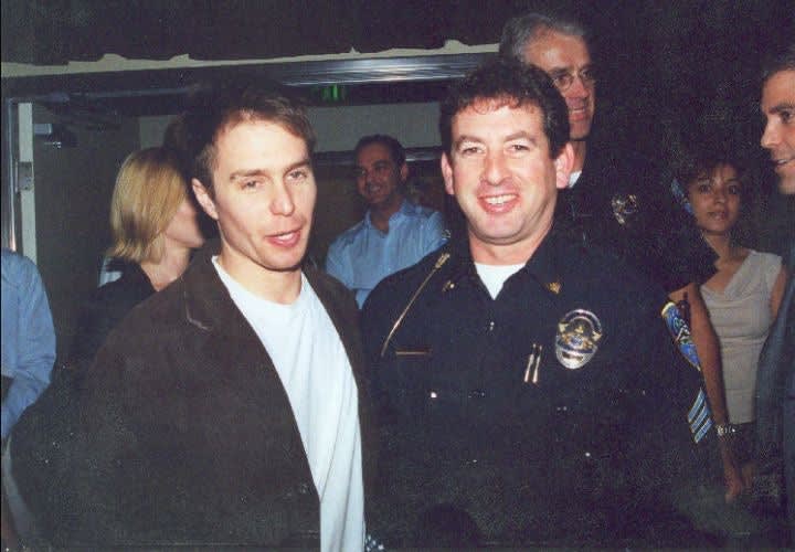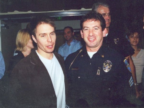 Sgt. Mitch Spike of the Palm Springs (Calif.) PD met actor Sam Rockwell during protective duty at a screening of "Confessions of a Dangerous Mind" (2002).