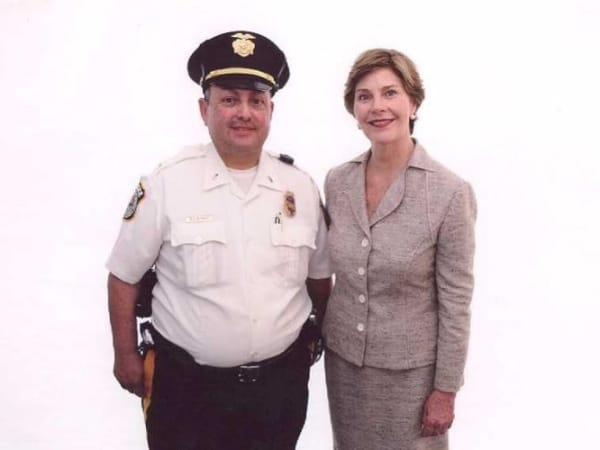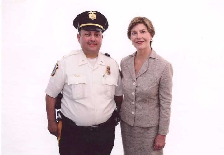 Lt. Nick DeMarco (now retired) of the U.S. Department of Defense Police met former First Lady Laura Bush while working her protective services detail with the U.S. Secret Service.