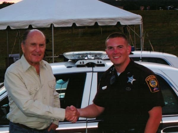 Deputy Matt Martin of the Fauquier County (Va.) Sheriff's Office met actor Robert Duvall during a local fund-raiser at the actor's farm. Martin is a master deputy sheriff assigned to the patrol division.