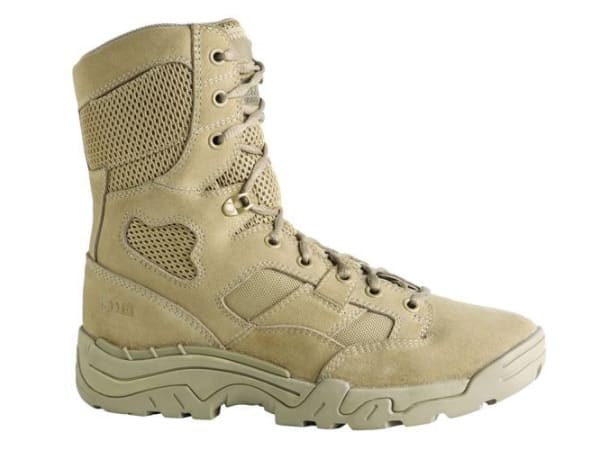 5.11 Tactical's Taclite boot in its "race to chase" line is Strobel lasted with the 5.11 Strike Platform for a lightweight and flexible first step in feel. In addition to an antibacterial and moisture-wicking lining, the adjustable Taclite boot features perforated foam padding on the ankle collar and tongue, as well as a TPU external ankle stabilizer and compression molded EVA midsole.