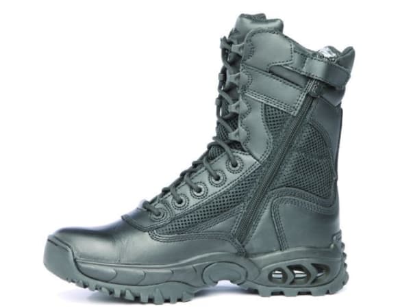Original S.W.A.T.'s Classic 9-Inch Side Zip boot is designed with a moisture-wicking lining and triple stitched upper for durability, breathability, and strength. Riveted steel shanks placed between two flexible lasting boards support torsional strength, while the hot melt heel and toe counters retain boot shape and hold the foot in place. The Classic 9-Inch boot also features a uniform code full-grain leather toe, athletic cushioning, and a removable orthotic footbed for comfort and foot support.