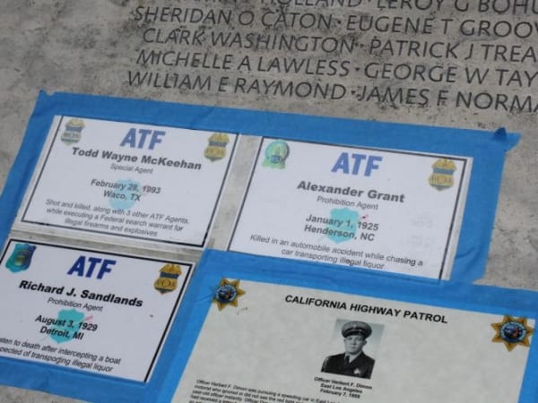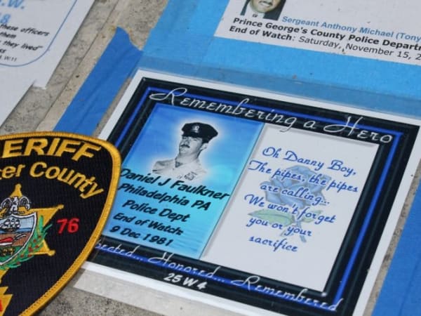 Officers place agency pins, mini patches and ribbons on the walls to honor fallen officers.