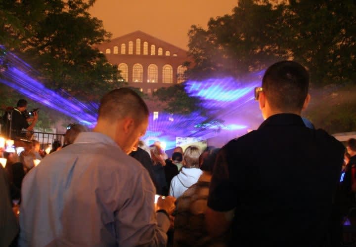 A blue laser-light show symbolizes the thin blue line during the vigil. Photo: NLEOMF.