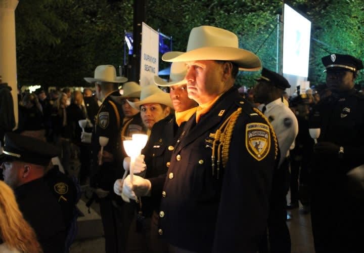 Families and supporters of fallen officers joined law enforcement personnel at the vigil. Photo: Paul Clinton.