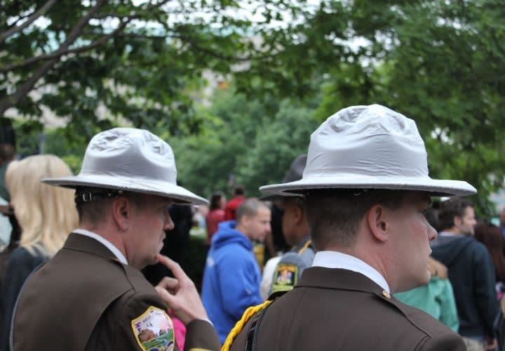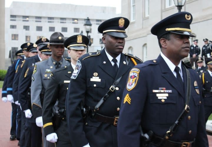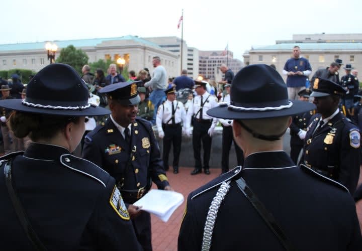 Honor guard officers listen to instructions prior to the candlelight vigil. Photo: Paul Clinton.