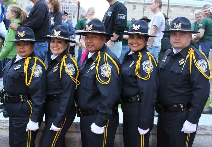 Honor guard officers march toward the National Law Enforcement Officers Memorial. Photo: Paul Clinton.
