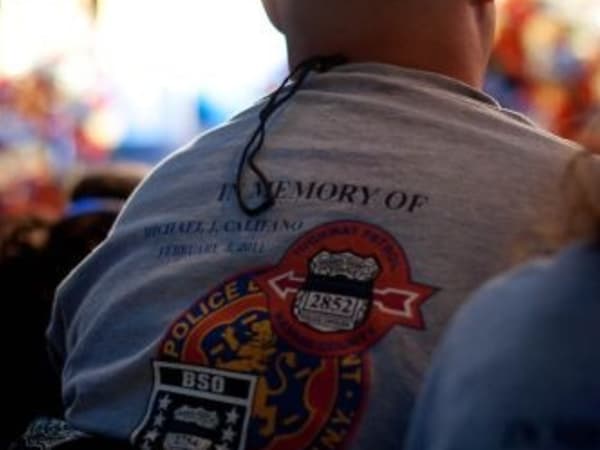 A supporter of slain Nassau County (N.Y.) Police officer Michael Califano participates in the vigil. Photo: Mark W. Clark