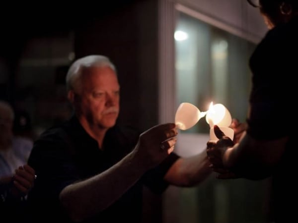 Attendees of the vigil lighted candles as the names of 362 fallen officers were read. Photo: Mark W. Clark