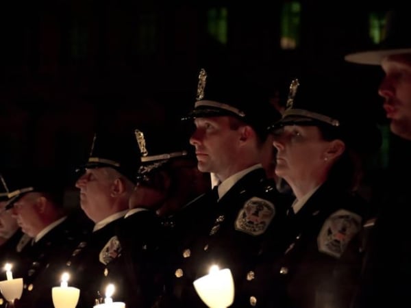 Officers with the U.S. Park Police hold their lighted candles during the NLEOMF's annual candlelight vigil. Photo: Mark W. Clark