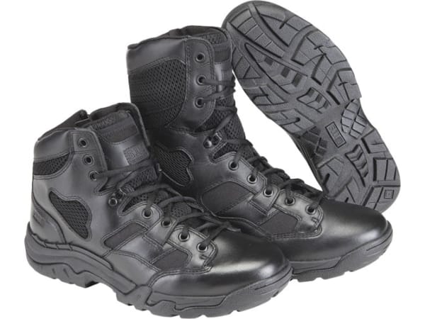 The 5.11 Taclite 8-inch Duty Boot has an upper of full-grain leather, 1,200-denier Cordura nylon, and breathable air mesh. Inside, an Ortholite sockliner, composite shank, and CMEVA midsole provide cushioning, comfort, and support while perforated EVA foam padding along with antibacterial and moisture-wicking linings keep feet comfortable and dry. The Taclite's outsole has fast rope control tread and a defined heel brake for control.