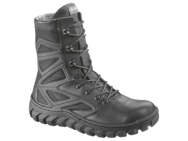 Bates' 8-inch Annobon boot will be available in Fall 2012. It features a polishable leather and nylon upper with a lightweight, flexible exoskeleton, perforated lining, and an internal shock-absorbing midsole, while a 10-degree heel-to-toe angle enhances stability and reduces foot fatigue. The boot's rubber cup outsole has self-cleaning channeled tread. Available in 6-inch black, 8-inch black, and 8-inch desert tan.