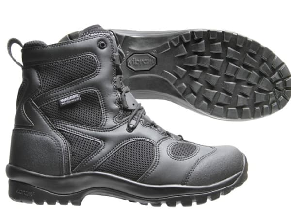 Rocky's new Athletic Mobility line offers various levels of protection. Both Level Two and Level Three boots are constructed with polishable black leather, waterproof Gore-Tex fabric, a lightweight rubber outsole, and 400 grams of PrimaLoft Eco Footwear insulation. L2 is available in a lace-up boot with an optional side zipper for easy on/off. L3 is constructed with leather and 900-denier high-abrasion nylon, and is available in a front-zip style, as well as a hidden lace system with a side-zip.