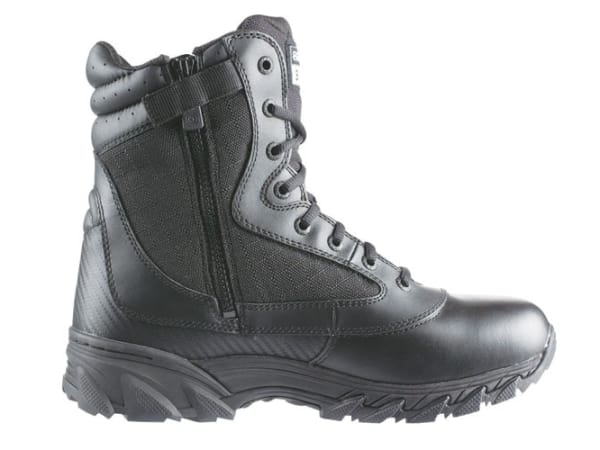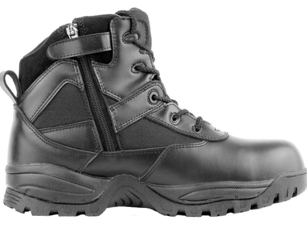 Maelstrom's P1360Z WP, also known as the company’s Patrol 6-inch black waterproof side zip boot, features a full-grain leather toe and nylon upper. This non-metallic boot has a waterproof membrane with full bootie construction, side zip for fast on and off, a removable open cell insole, shock-absorbing molded EVA midsole, and slip-resistant rubber outsole.