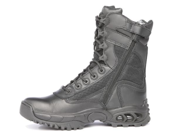 The 8055Z Air Tac Plus is an 8-inch, non-metallic tactical boot created with Ridge Footwear's new generation carbon rubber air outsole design and a triple-stitched leather/nylon mesh upper. The boot features a removable insole and a built-in composite shank, as well as nylon composite eyelets for nylon speed lacing. The dual air chamber heel support and polyurethane midsole provide additional cushion and comfort.
