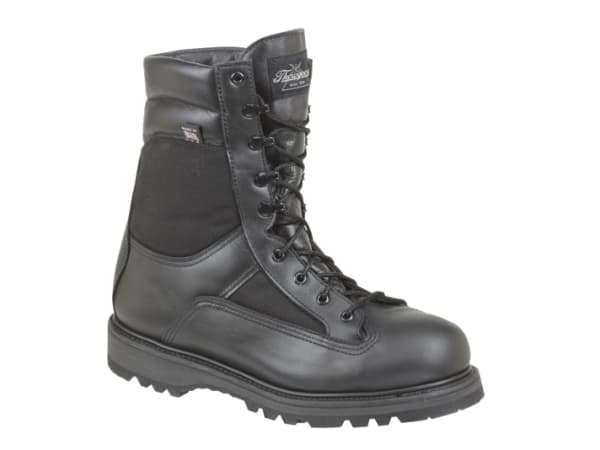 Thorogood's Platinum USA Tactical Footwear Series is engineered to deal with debris. Protective features include a flexible L-Protection insole to defend against punctures, a waterproof Sympatex barrier to block out fluids and blood-borne pathogens, and full-grain black leather that resists damage from water, cutting, and heat. Also includes the exclusive "Motion Sensor" footbed and Vibram Sierra lug soles.