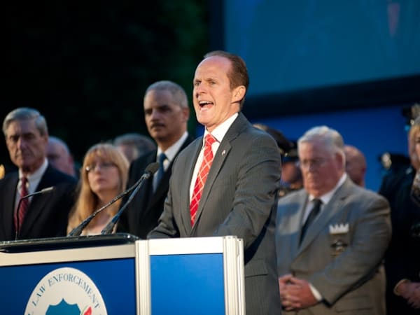 Craig Floyd, chairman and CEO of NLEOMF, speaks at the vigil.