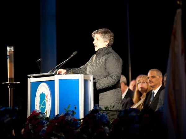 Homeland Security Secretary Janet Napolitano speaks at the vigil.