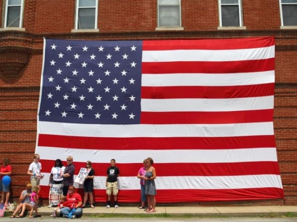 Residents displayed a large American flag
