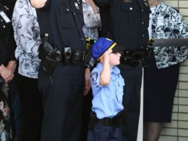 Officers and a young boy salute Officer Ellis.