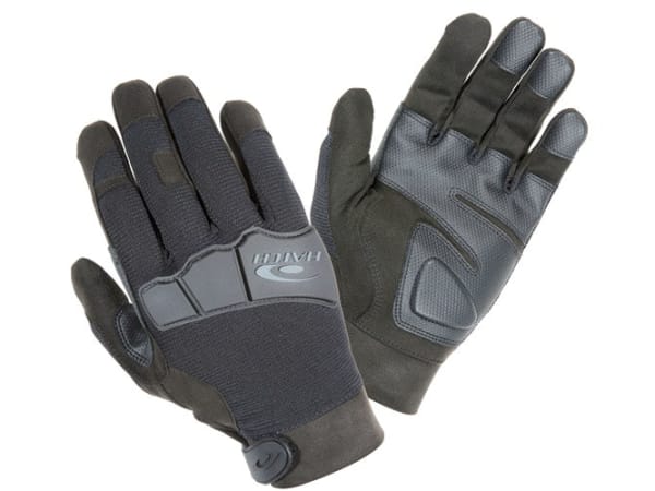 Hatch's Task Heavy Knuckle gloves are designed for shooting in rugged outdoor environments. These gloves feature a patented trigger finger "cut ring" that provides for optional removal of the index finger without unraveling the remaining edge, touchscreen technology that allows use with digital equipment, and the signature Ergo-Cut Floating Thumb.