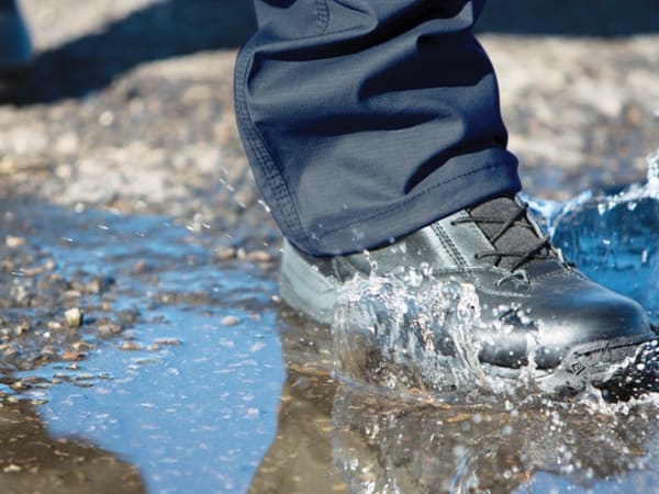 First Tactical’s 8-inch Waterproof Side Zip Duty Boots feature a waterproof, membrane-lined construction to keep wearers' feet dry on the wettest of days.