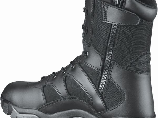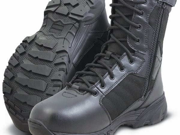 The Breach 8 SZ tactical side-zip boots from Smith & Wesson Footwear are made to be durable, reliable, and extremely comfortable for everyday wear. Features include leather-and-nylon uppers for added protection and comfort; a PU collar for easy cleaning; foam-padded collar and tongue for protection and increased breathability; gusseted tongue to keep dirt and debris out; EVA midsole for lightweight comfort and cradled support; steel shank for enhanced support; board-lasted construction for torsional rigidity to reduce foot fatigue; slip-resistant, non-marking rubber outsole, and 100% polyester laces. http://smithandwessonfootwear.com Photo: Smith & Wesson Footwear