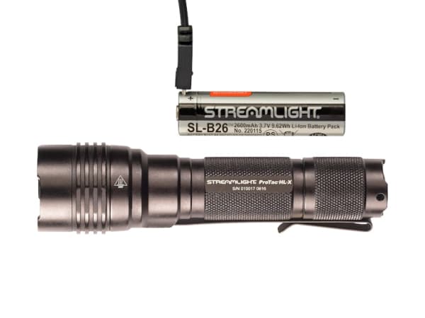 The ProTac HL-X was Streamlight’s first programmable, handheld, lithium battery-powered flashlight. With its extraordinary lumen light output, the ProTac HL-X was designed for flooding an area with light while still delivering a strong, focused beam. The combination of its high lumen output and small size make it one of Streamlight’s brightest, most convenient, personal carry lights among police. The ProTac Rail Mount HL-X offers the latest in illumination technology for rifles, carbines, and sub-machine guns with 1913 (Picatinny) rails. Both models feature multi-fuel options including either a USB rechargeable system that uses a Streamlight SL-B26 USB rechargeable battery, or a CR123A Lithium battery version .