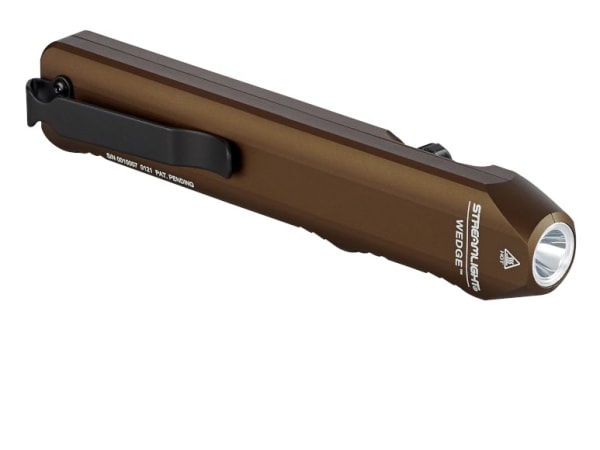 The Wedge is a USB-C rechargeable everyday carry flashlight with a thin, compact design for deep pocket carry. Featuring an intuitive rotating thumb switch, it provides two modes: constant on mode and a momentary THRO (Temporarily Heightened Regulated Output) mode. On the THRO momentary setting, the Wedge delivers a 35-second burst of 1,000 lumens and 3,000 candela over a 110-meter beam distance. In constant-on mode, it provides 300 lumens, 1,200 candela, a beam distance of 69 meters, and a 3-hour run time.
