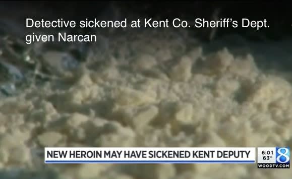 The sheriff’s office says the Wyoming detective with the Kent Area Narcotics Enforcement Team started feeling nauseous and his heart rate increased while testing the unknown substance. His symptoms were similar to those caused by a drug exposure, the sheriff’s department said.