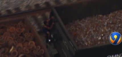 The Honda exited the interstate followed by police, and at one point, the driver jumped out of the car, ran toward some train tracks and then jumped onto a moving train in order to get away.
