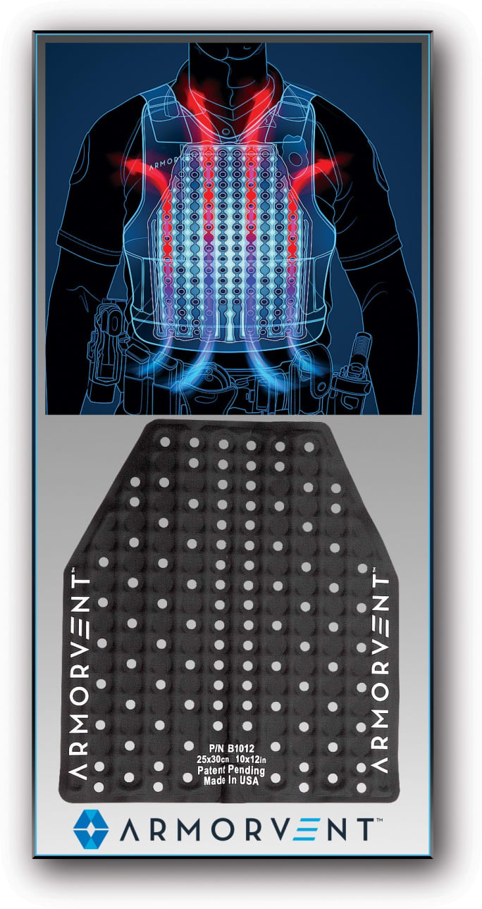 ARMORVENT was created to answer the industry need for a product that makes it an easier decision to wear body armor every day. ARMORVENT is fueled solely by the body's natural cooling mechanisms, and uses scientifically proven EVAP Technology to accelerate sweat evaporation and naturally ventilate body heat while providing padding and improved load distribution.