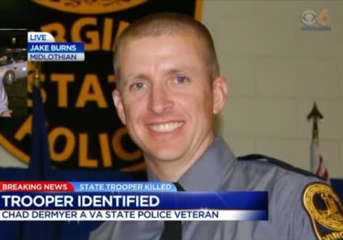 Virginia State Police Superintendent Colonel W. Steven Flaherty said Trooper Chad P. Dermyer died from the injuries he sustained in the shooting, reports WTVR .