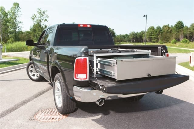 OPS Public Safety's new Max Storage Drawer fits between the wheelwells of a pickup truck and extends to a maximum of 60 inches with a total load capacity of 400 pounds. It provides secure storage and is manufactured of 0.100 North American aluminum with heavy-duty ball bearing drawer slides. The Schaumburg, IL-based company also manufactures secure lightweight aluminum drawer systems for SUVs.