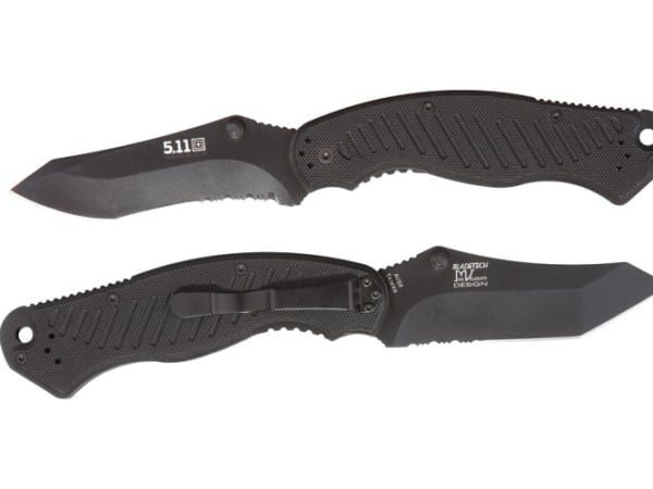 The 5.11 Tactical ARK Knives liner lock folders are a great deal. Available in a Tanto or a Recurve blade, they have great ergonomics and solid production value. The blades are razor sharp AUS8 steel with partial serrations for cutting through webbing such as seat belts. Grips are made of scaled G10, and they feel really solid in your hand. List price is $69.99, but you can find them for less than $50.