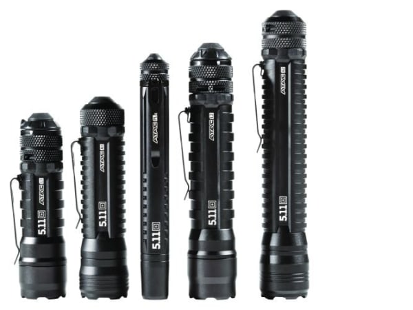 Law enforcement apparel maker 5.11 Tactical entered the flashlight market several years back with its supercapacitor-powered Light for Life patrol light. At this year's IACP, the company introduced a new line of conventional battery-powered flashlights called ATAC. The five ATAC lights range in size from a 6-inch long pen light to a 5.3-inch tactical light. All except the pen light offers advanced features such as strobe mode. Prices range from $29.99 to $84.99.