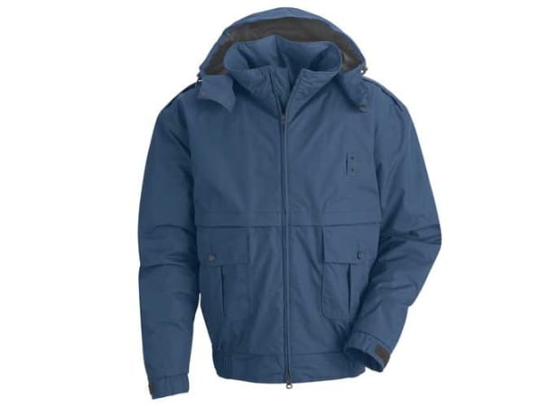 The Elbeco Shield Meridian Modular Outerwear Jacket has a water-repellent nylon shell that offers wind and rain protection while retaining a high level of breathability. Telescopic sleeves allow for full range of arm movement and side zipper vents with snaps provide quick access to belt equipment. An included fully insulated zip-out Thinsulate liner features zip-off sleeves and openings that allow access to inner jacket pockets. A snap-off hood is now available free of charge. Available for about $120 from various merchants.