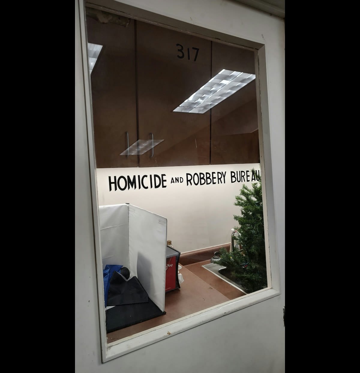 The door of the homicide investigations office where detectives interviewed Lee Harvey Oswald was removed, door frame and all, from the former police headquarters building.