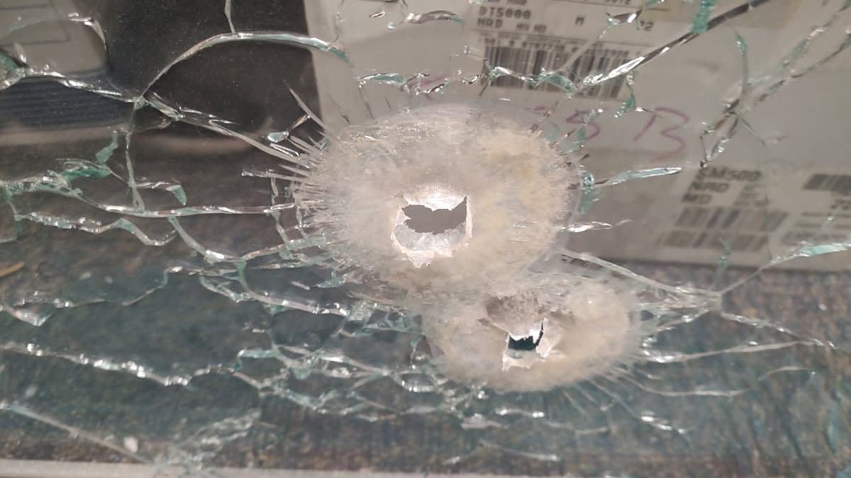 Police still have one of the front windows, with bullet holes intact, from the 2015 attack on police headquarters.