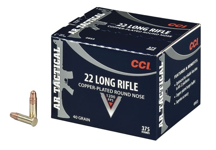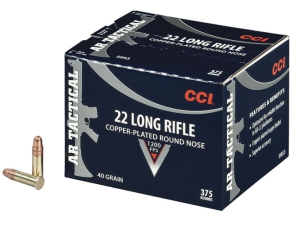 CCI has engineered a load specifically for tactical AR-style guns being offered in .22 Long Rifle. These new rounds offer excellent accuracy and provide an affordable and reliable shooting option. Bullets were specifically tested for use with common law enforcement and military-issue Smith & Wesson M&P 15/22 firearms. AR-Tactical will work well in other AR-platform and semi-auto rifle models.