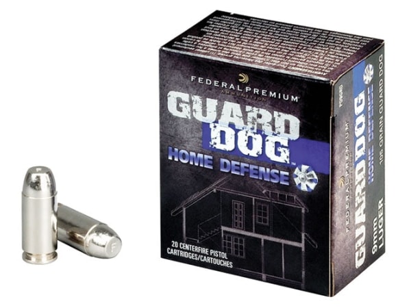 ATK's Federal Premium Guard Dog Home Defense rounds are also suited to law enforcement because of their high velocities, low recoil, and reliable feeding. Featuring a patented EFMJ construction, this bullet is filled with expanding polymer that minimizes over-penetration through interior walls. This non-hollow-point is available in lightweight 9mm, .40 S&W and, .45 auto handgun options.
