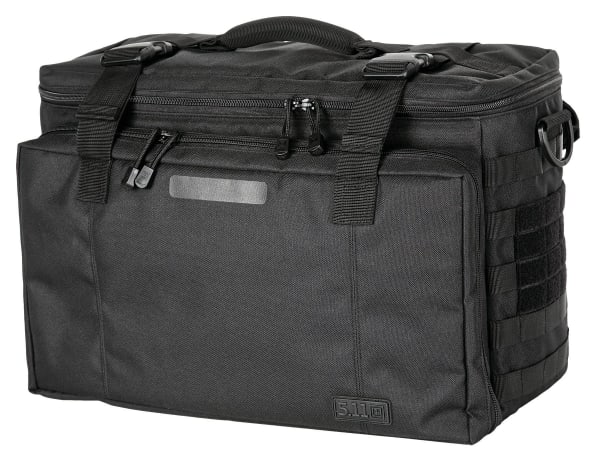 5.11 Tactical's Wingman Patrol Bag can work as a messenger bag or as a car seat organizer if you use the strap to hold it onto the seat back. The 600-denier polyester bag features two fold-open web platforms with BBS, an organizer panel, an adjustable main compartment divider, a side mount patch, an ID window on back, front panel embellishment, mesh pockets, YKK zippers, a write bar, Duraflex hardware, and an adjustable padded shoulder strap.