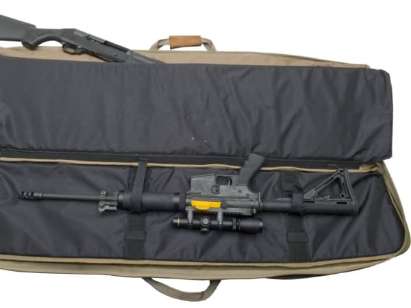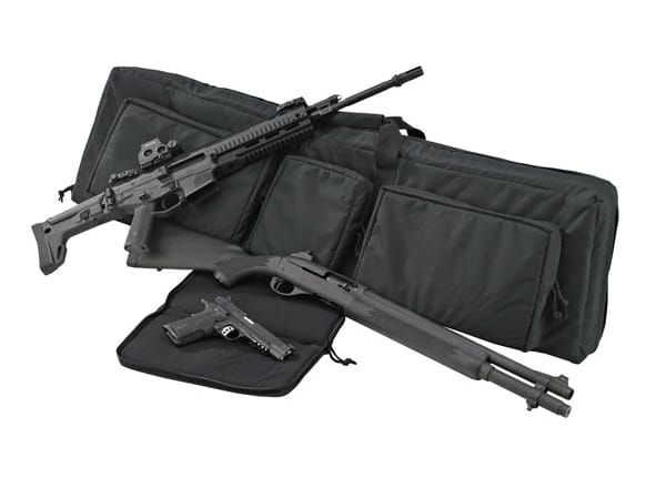 Brownells' three-gun case is mainly for officers who do double duty as patrol and SWAT for active shooter situations. Its divided and padded storage accommodates two long guns and another handgun. There are also pockets for magazines and other gear. The case is 48 inches long and features adjustable straps, hook-and-loop fasteners, a removable soft-padded pistol rug, reinforced carry handles, and adjustable padded shoulder straps and a quick-release chest strap for carrying the case like a backpack.