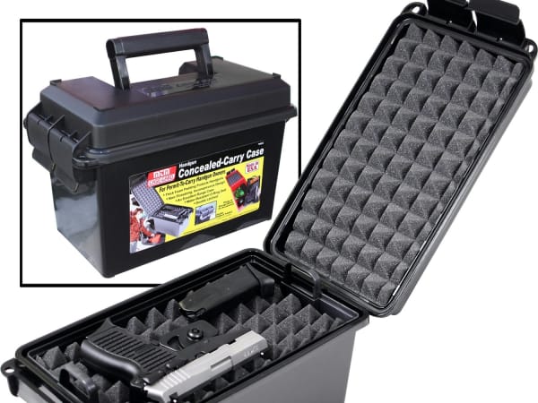 MTM Case Guard's new handgun concealed-carry case is meant to transfer a handgun and supplies safely and discreetly. The case has foam padding to prevent shifting and is double padlock tabbed with a heavy-duty latching system. It is molded from polypropylene plastic with molded-in stacked ridges and a tongue-and-groove O-Ring seal system keeps it water-resistant.