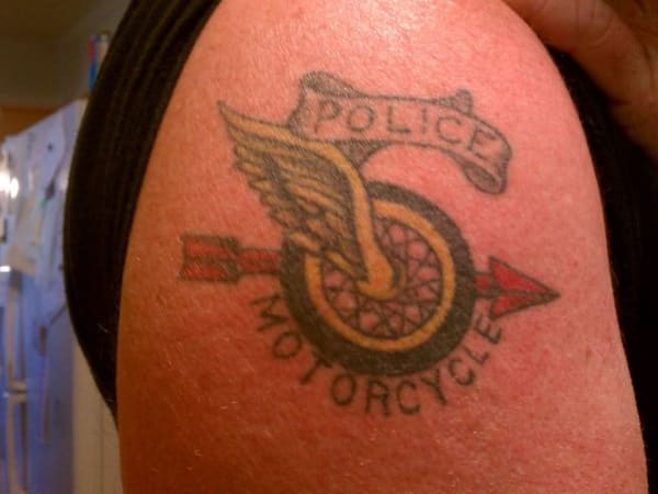 This officer got his police motorcycle tattoo after completing motor operator school in 2006.