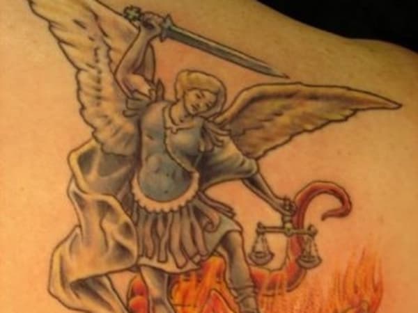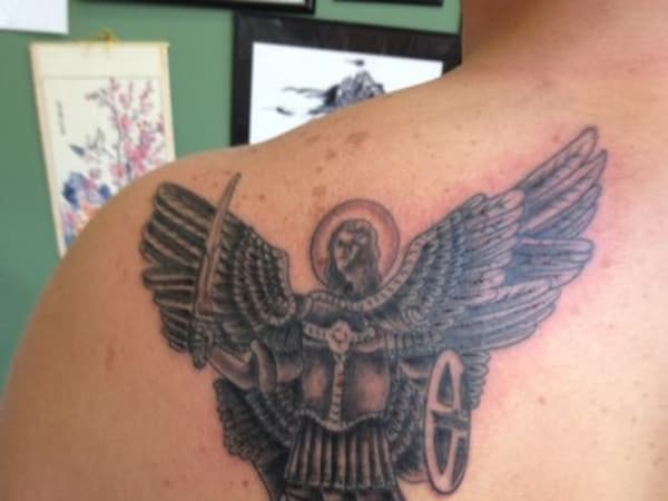 This officer based his Saint Michael tattoo on a statue in Kiev, Ukraine.