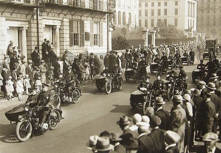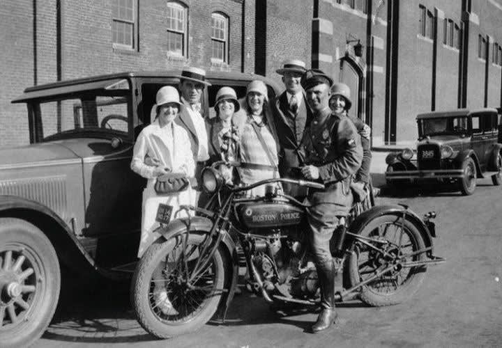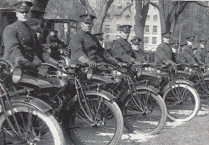Boston motor officers pose with their Indian motorcycles in 1923.