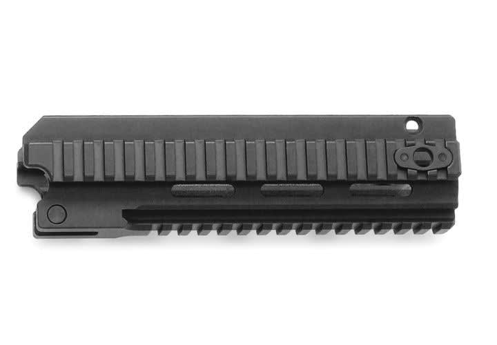 The tri-rail hand guard arrives with a heat shield and rail inserts to keep heat away from the operator's front hand.