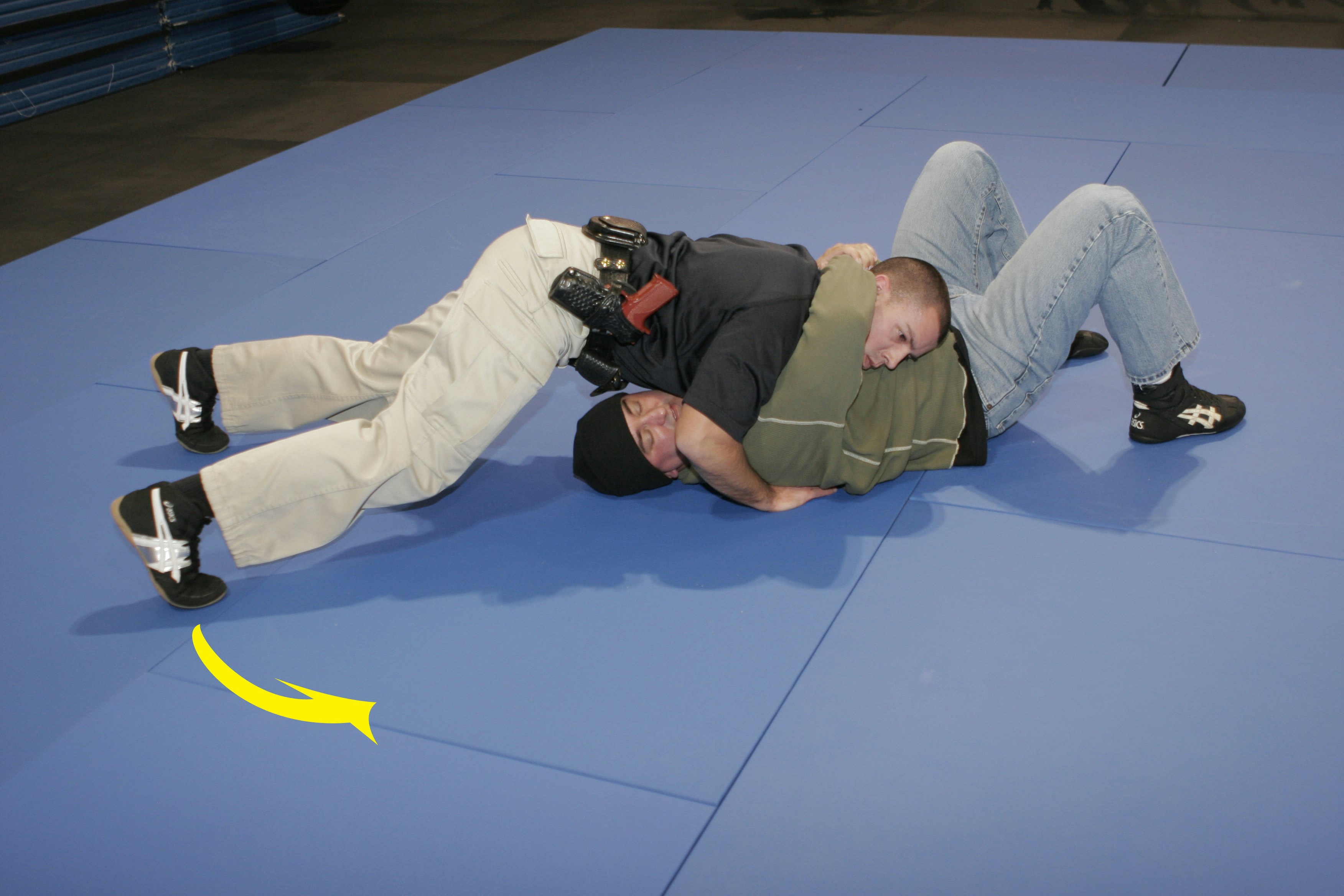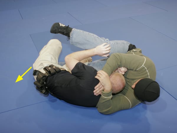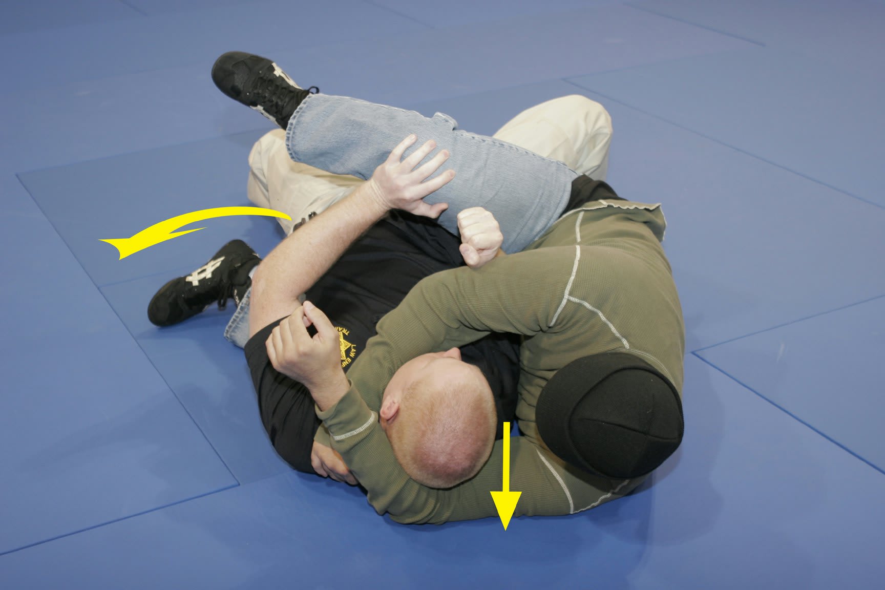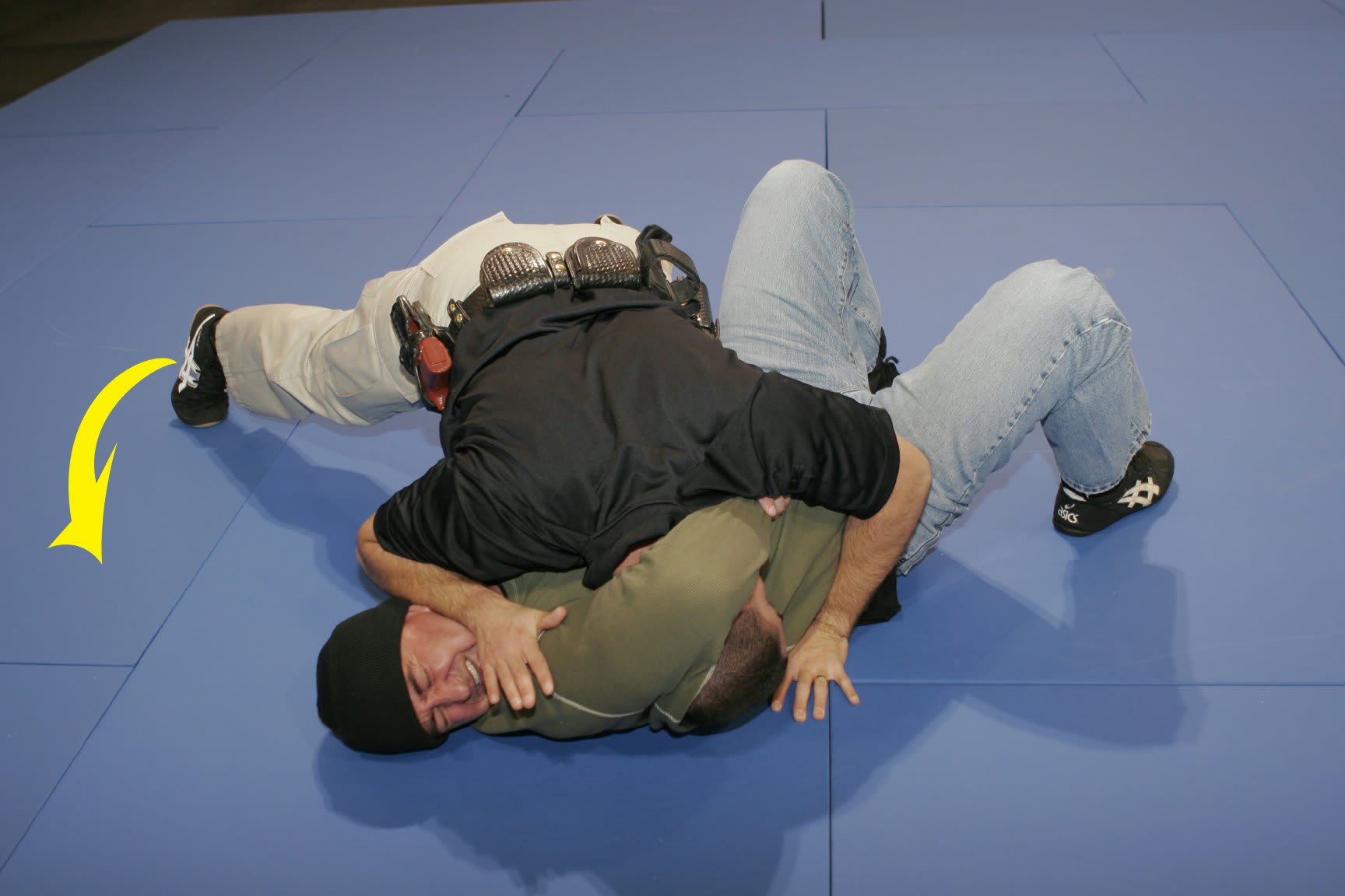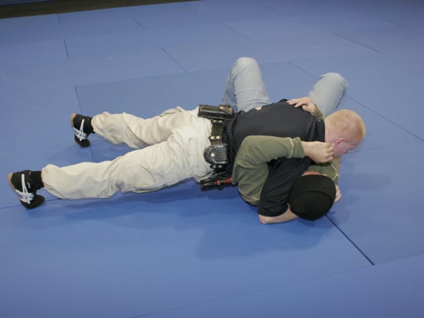 Continue moving to the choke side to break the choke hold and assume a superior position. You can now transition to your feet or another force option.